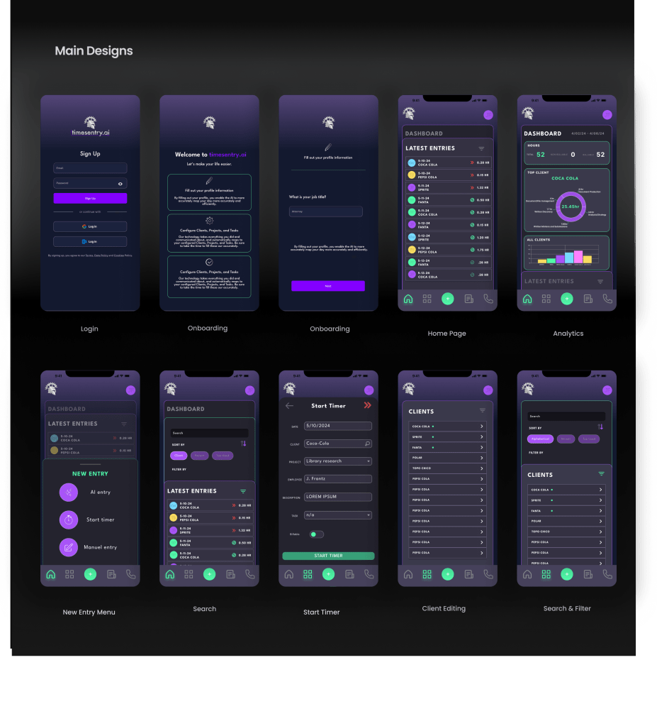 I was introduced to Timesentry while freelancing, doing design consultations around branding. The CEO had only created a basic product, and had little semblance of a design vision.
